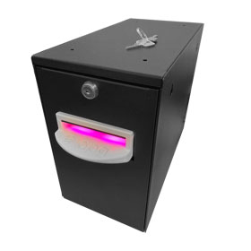 {CURRENCY MANAGEMENT}APG Counts the CashA step forward in cash handling, as new hardware, designated Note Acceptor, has been debuted at apg (Minneapolis, MN). In fighting counterfeiting and theft, it validates and stores high value notes in 145 currency configurations (of U.S. Dollars, Euros, Pounds Sterling). It detects fraudulent and counterfeit bills in 2.5 seconds, according to apg. In steel-case dimensions of 5.5"/140 mm (W) x 10.6"/270 mm (D) x 9"/230 mm (H), weighing 4.6 lbs./2.1 kg, apg's Note Acceptor has mounting points on all four sides and LED Status Indicator. It counts and stores up to 300 validated notes. It also features secondary locking on the stacker box for maximum security and plug-and-play Interface, USB. Secure Cash Management: apg Note Acceptor |